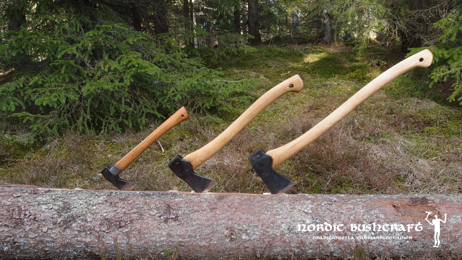 Att välja rätt yxa kan vara svårt, det finns idag många yxor att välja på i olika storlekar och modeller. Valet av yxa beror på vad den ska användas till och även om man behöver bära den så kan vikten vara avgörande. Denna gång skall vi titta på 3 storlekar av yxor, från en liten till en mellan och även en stor yxa. Alla yxorna är från Gränsfors Bruks och tillhör mina privata yxor och den lilla skogsyxan har varit med mig i över 10 år. Något att änka på att en längre yxa är säkrare att använda men är oftast tyngre och kräver mer energi att jobba med.